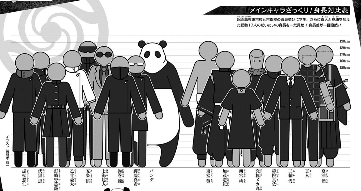 1 Tokyo Jujutsu High 2 Kyoto Jujutsu High 3 Jujutsu Sorcerers 4 Cursed Spirits 5 Curse Users 6 Non-Sorcerers 7 Navigation. Jujutsu kaisen character heights part 1 selfsimp4gojo submitted 7 minutes ago by simp4gojo. The fall 2020 anime series Jujutsu Kaisen is proving to be the property of the moment that pushes huge sales onto the manga side. Yuuma Uchida 34 Nobara KUGISAKI.